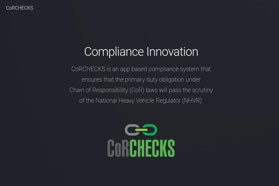CoRCHECKS is an app based compliance system that ensures that the primary duty obligation under Chain of Responsibility (CoR) legislation will pass the scrutiny of the National Heavy Vehicle Regulator (NHVR).