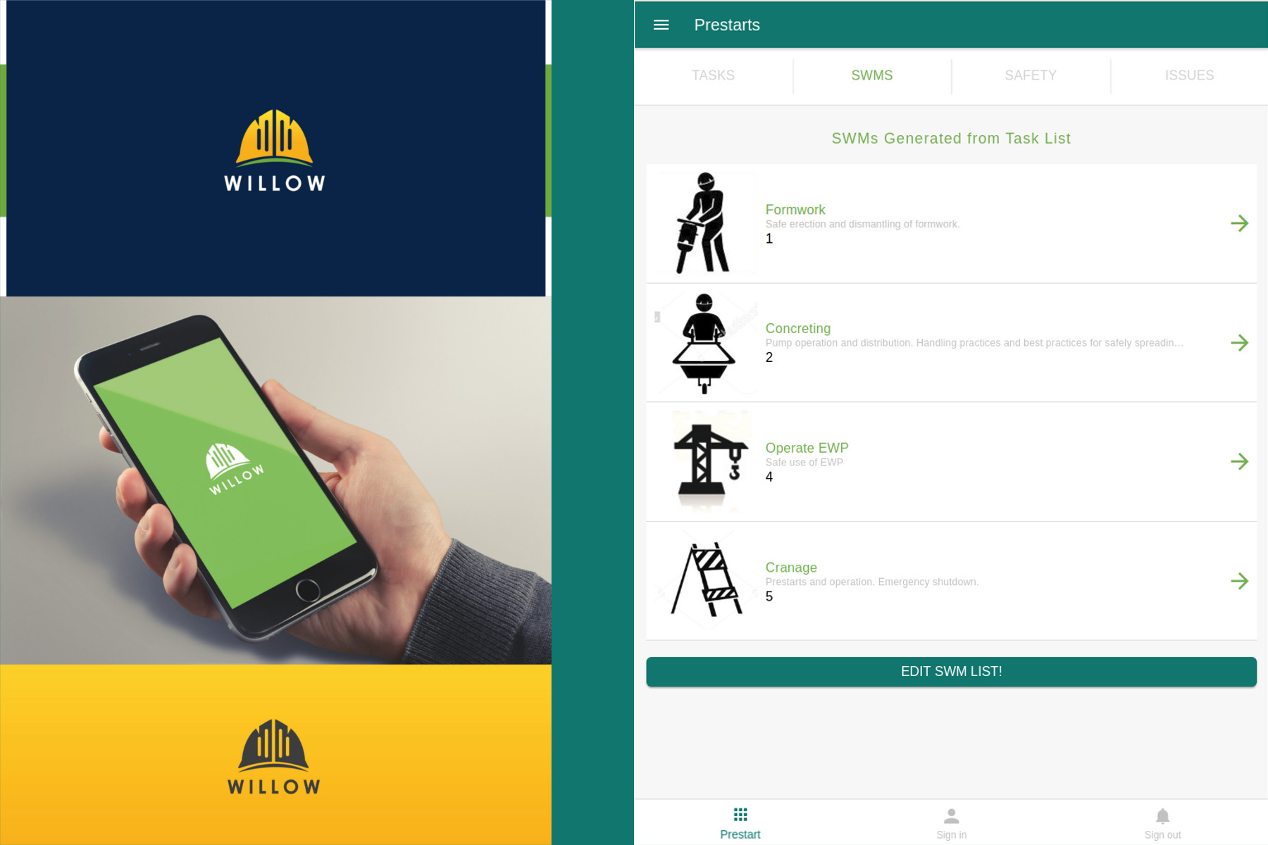 Willow provides a central compliance system targeting daily work flow around site prestart coverage in the construction industry.